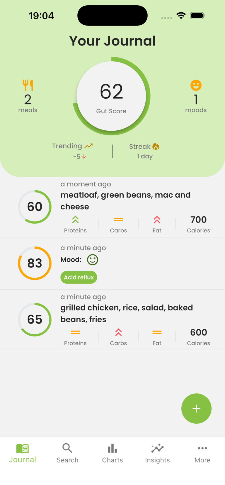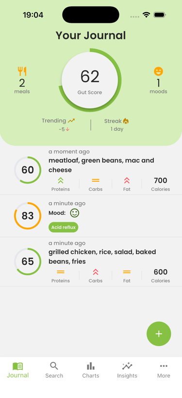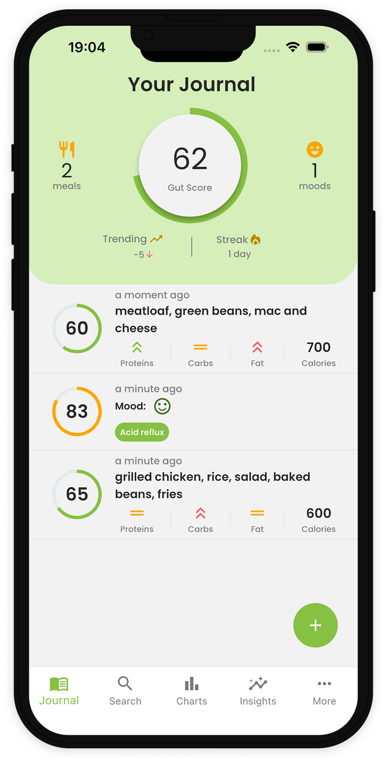 Track your meals, symptoms, and well-being to uncover patterns that affect your digestion. Get personalized insights and simple tips to improve your gut health and live with more comfort and energy.