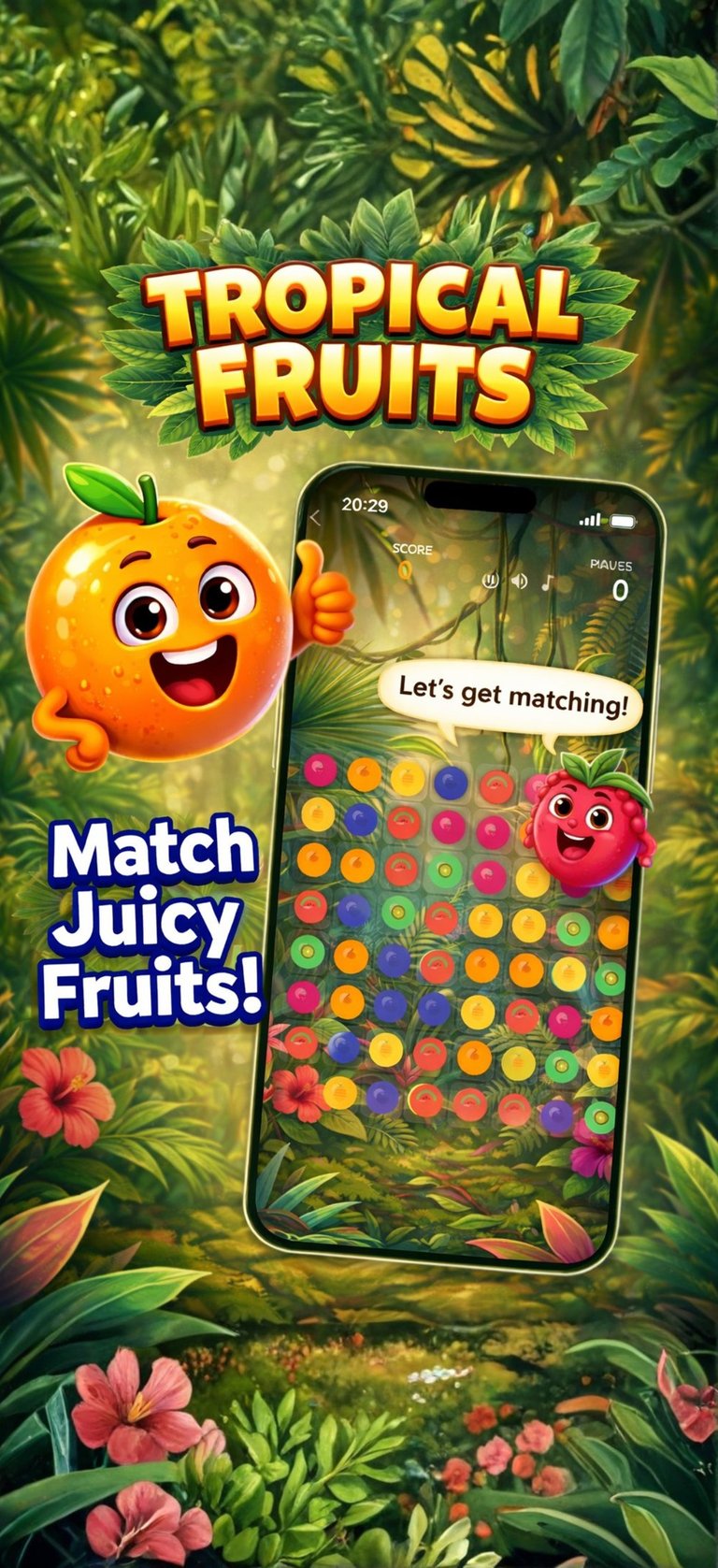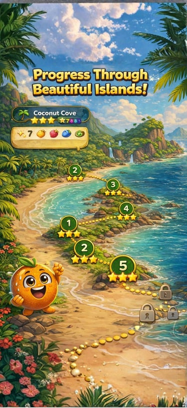 Dive into a juicy match-3 adventure set in a vibrant tropical paradise!